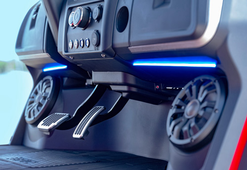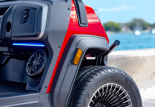 - Built-in ECOXGear Marine Grade Sound System with 7.5A 360W & Four 6.5” Speakers